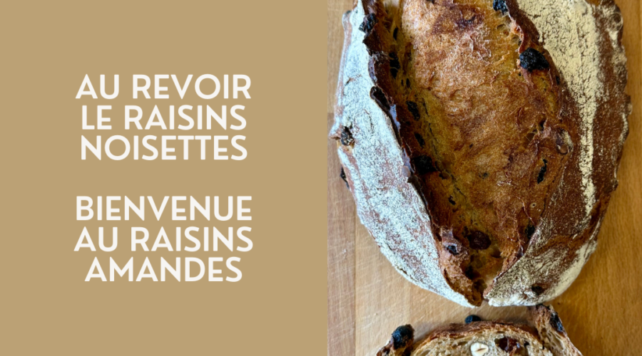 La conclusion pour commencer : notre pain raisin-noisette devient le pain raisin-amande, à partir du 9 mars 2026. Remontons le fil pour vous expliquer pourquoi. …