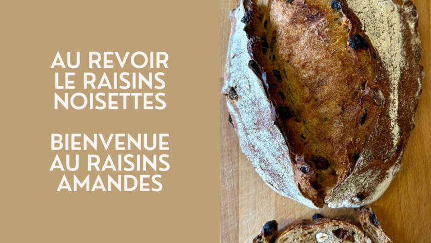 La conclusion pour commencer : notre pain raisin-noisette devient le pain raisin-amande, à partir du 9 mars 2026.